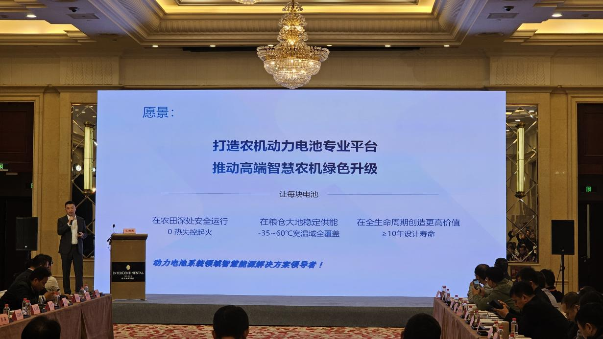 重庆云宸新能源科技有限公司(简称“重庆云宸”)总经理马兹林应邀参加会议,并在会上做主题为“混动农机专用动力电池特点及应用”的主旨发言。